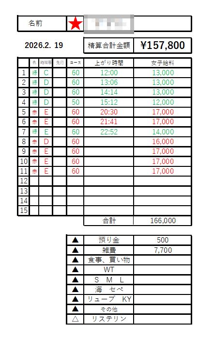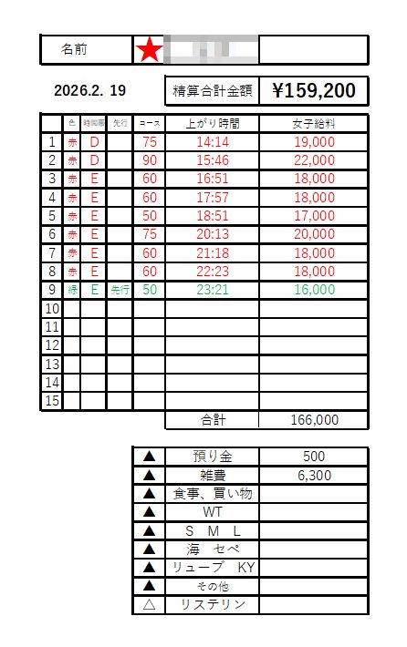 本指名を中心とした安定型の勤務事例です。