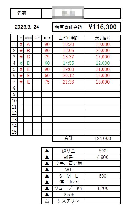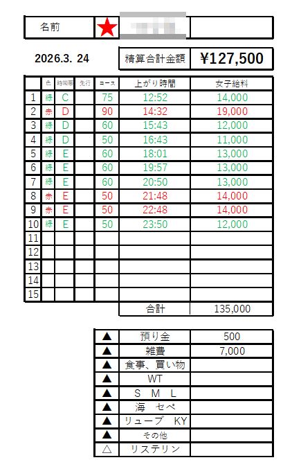 本指名料金 :+3,000円