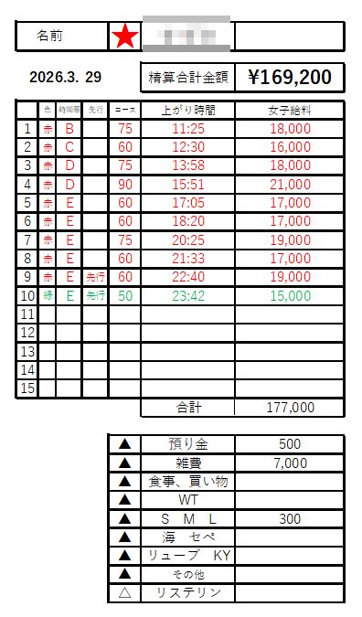 本指名の本数と構成が収入を大きく左右します。