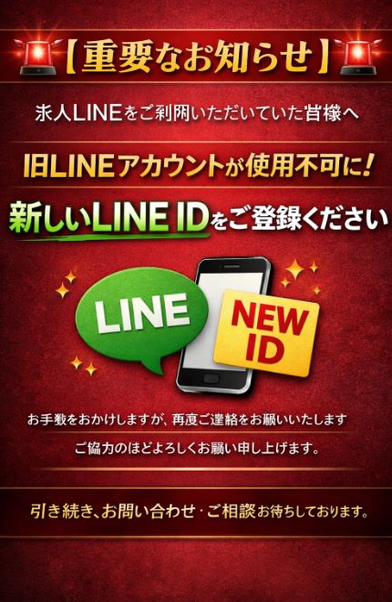 そのため、新しいLINE IDを設置しておりますので、お手数ではございますが再度そちらへご連絡をお願いいたします。