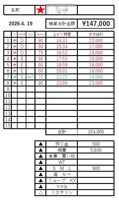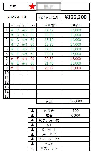こちらは本指名を中心とした出勤です。