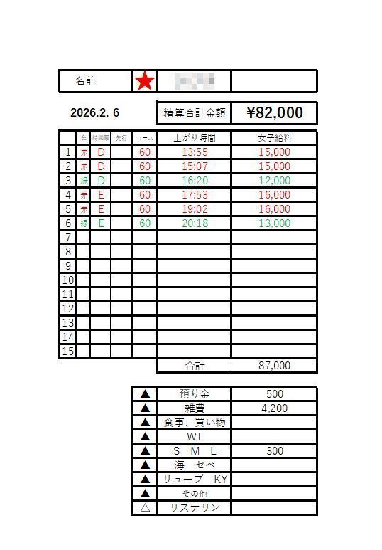 出勤した際の結果や