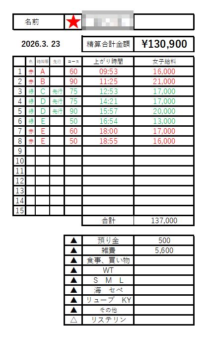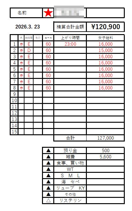 本指名料金 :+3,000円