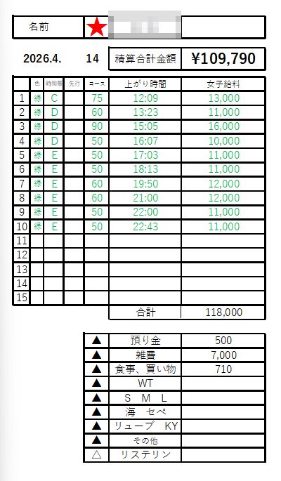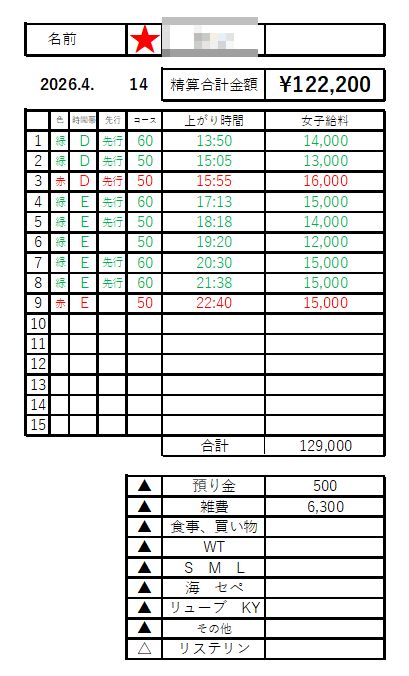 こちらはウェブ予約と本指名を組み合わせた出勤です。